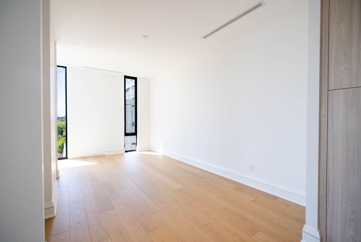 WELCOME TO THE RHODES - A NEW YORK-INSPIRED, LUXURY BOUTIQUE RESIDENCE with only 25 private suites, ideally situated at the crossroads of Forest Hill, Cedarvale, and The Upper Village. Designed by Ali Budd Interiors and developed by Blackdoor Development Company, The Rhodes is the only building of its kind in the area - a rare opportunity to own in a residence that combines tranquility, sophistication, and white-glove service. This 2-bedroom + lounge, 3 bathroom suite of 2,873 sq.ft. of interior living space plus 330 sq.ft. of a west-facing terrace off the living area complete with gas BBQ connection, landscaping, and seasonal florals. Direct elevator-to-suite access opens into a private rotunda and foyer leading to a grand, open layout with 10' ceilings and architectural windows framing serene, park-like vistas reminiscent of Central Park. This residence is move-in ready, and available for immediate possession. Interiors feature 7" wide-plank engineered hardwood, quartz countertops, a full Gaggenau appliance package, 7" baseboards, 8' solid core doors, heated ensuite floors, and curbless showers. The lounge area offers flexibility as a library, home office, or guest space. Residents enjoy concierge service by The Forest Hill Group, gym, rooftop terrace, pet spa, boardroom, and a grand front entrance that sets the tone for the refined lifestyle within. A boutique residence like no other - make The Rhodes your forever home.