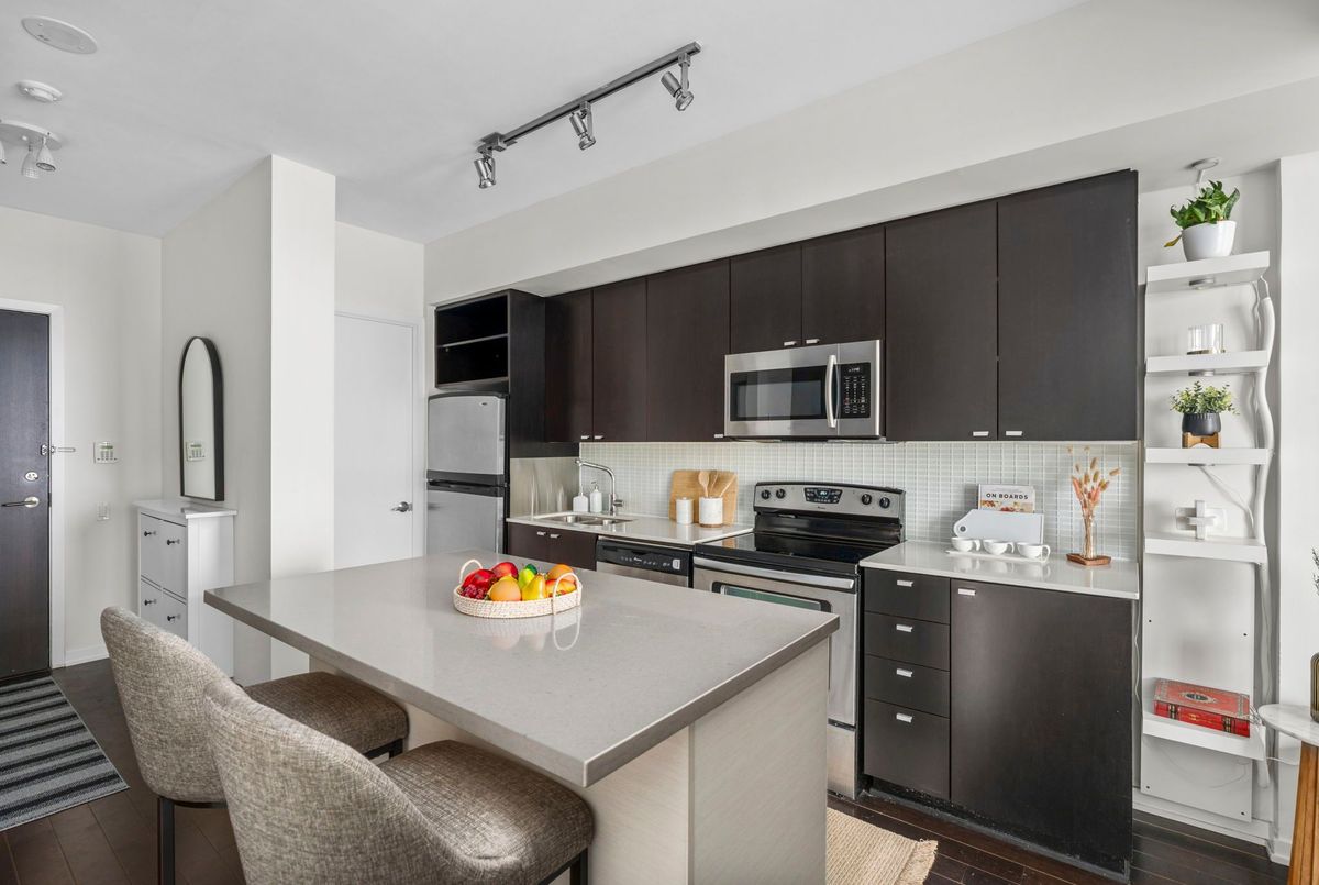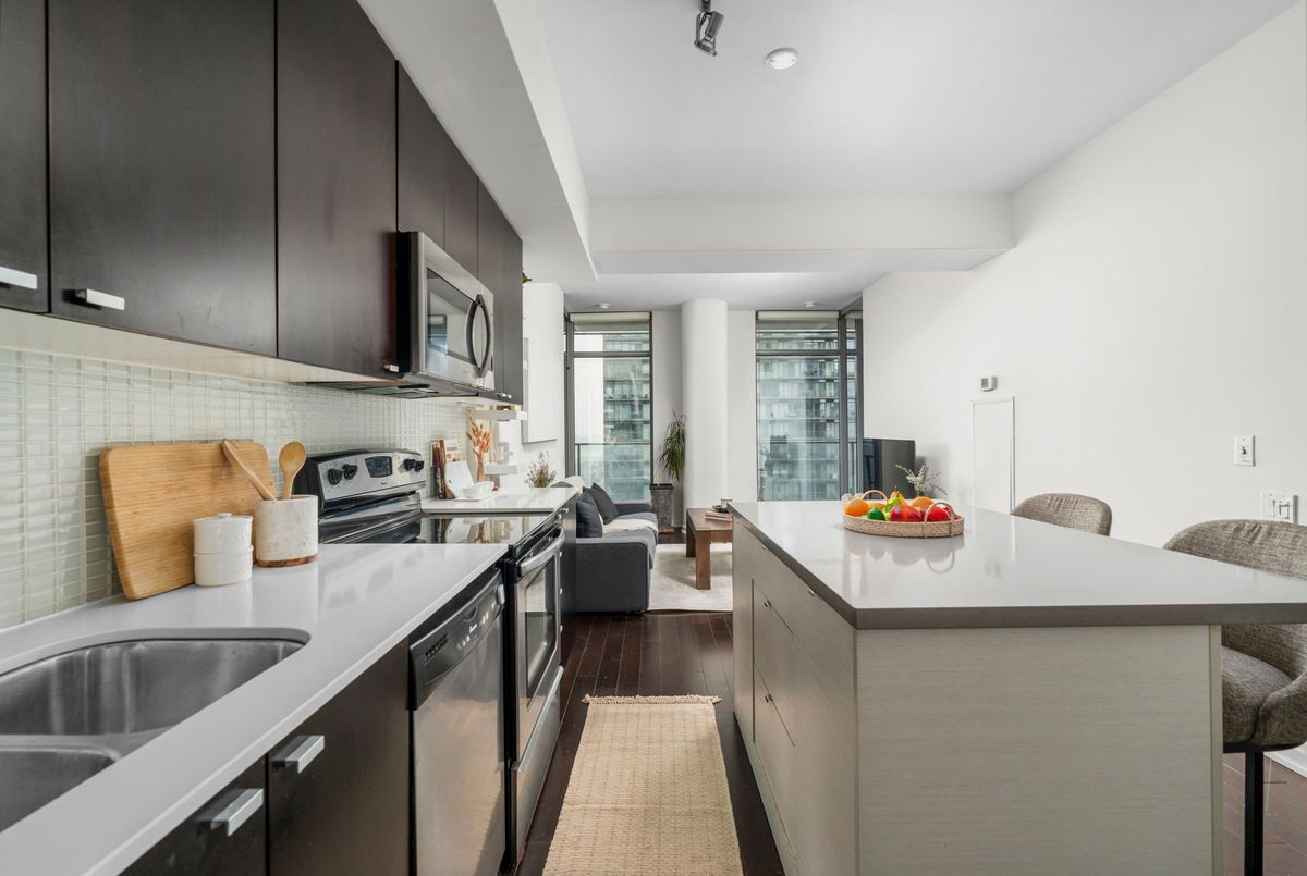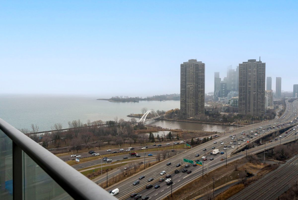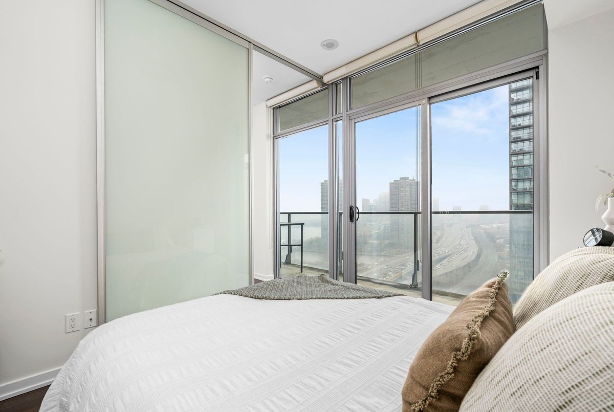 Bright & Spacious Lake view Suite at NXT Condos - Lake & Pool Views! Welcome to this beautifully maintained 2-bedroom, Plus full seized den with 2 full bathroom suites at NXT Condos, offering stylish, sun-filled living in one of Toronto's most coveted waterfront communities. Floor-to-ceiling windows wrap the space in natural light, framing breathtaking views of Lake Ontario and the building's spectacular pool facilities right from your own home. The open-concept layout flows effortlessly from the sleek, modern kitchen through to the dining and living areas - ideal for entertaining or simply unwinding after a long day. The spacious primary bedroom features an oversized walk-in closet and private ensuite, while the second bedroom is perfectly suited for guests, family with views to the lake. The den is large enough for a dedicated home office or lounge. In-unit laundry room and ample storage round out this thoughtfully designed suite. Life at NXT means resort-style living every day - indoor and outdoor pools, fully equipped fitness centre, tennis court, party and meeting rooms, media centre, on-site daycare, 24-hour concierge and security, and so much more. One parking space and storage locker included. Nestled in the sought-after Swansea neighbourhood between the Humber River and High Park, you're steps from Sunnyside Beach, the lakeside boardwalk, Bloor West Village, TTC, and quick access to downtown and major highways. Don't miss your chance to own one of the most desirable layouts in the building!